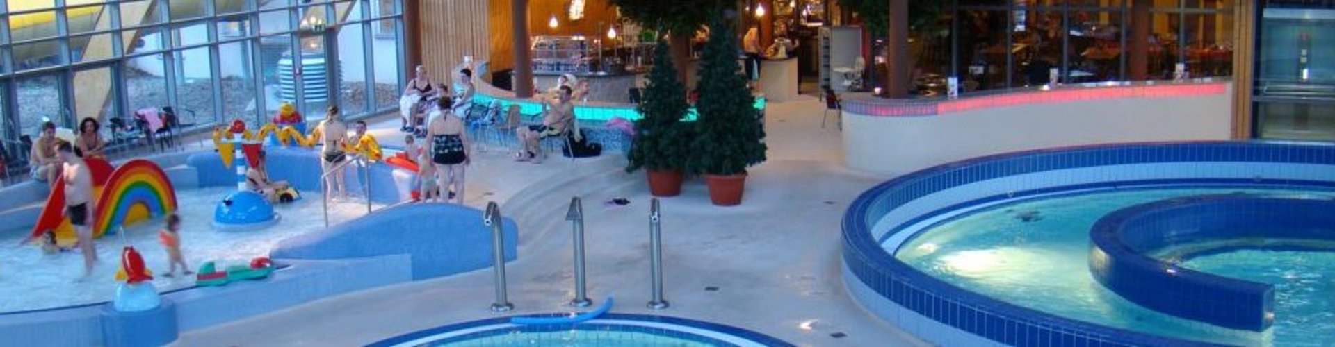 Das Highlight ist die mehr als 100 m lange Superrutsche „Magic Eye“, und für die ganz Kleinen wartet eine bunte Regenbogen-Rutsche. Ein aufregender Strömungskanal mit Brodelberg, ein Grottenbereich, eine Gegenstromanlage und zahlreiche Massagedüsen runden das Erlebnis ab. Für die ganz Kleinen gibt es einen Babybereich, und für das leibliche Wohl sorgt unser Bistrobereich mit Snacks und Getränken.